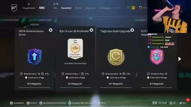 00:09:29Es werden FIFA Packs geöffnet und SBCs (Squad Building Challenges) betrachtet, insbesondere im Hinblick auf interessante Optionen für den Streamer als Dortmund-Fan. Es wird überlegt, ob man Gerd Müller SBC machen soll und Top-Partien SBCs werden in Betracht gezogen. Der Streamer ruft den Battle Pass ab und freut sich über SBC-Futter wie Koulibaly. Es werden Packs geöffnet, aber die Ausbeute ist eher enttäuschend. Der Streamer spricht über die Möglichkeit, die Weekend League auch am Montag zu streamen. Es wird überlegt, welche SBCs sich lohnen und der SBC-Speicher wird geöffnet, um zu sehen, ob es etwas Brauchbares gibt. Trotz vieler Packs und SBCs zieht der Streamer wenig Brauchbares. Es wird überlegt, ein Icon Pack zu öffnen, aber Bedenken wegen schlechter Erfahrungen werden geäußert.