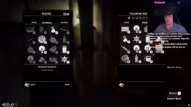 06:12:31In einem Gespräch mit Dr. Schulz wird deutlich, dass dieser in einen Notfall verwickelt ist und die Herrschaften etwas vorhaben. Es wird über ein Pferd namens Am Fell gesprochen. Mr. Sauer wird aufgefordert, zur Kalliga zu kommen. Shelby trifft Mr. Loven und beginnt, verdeckt zu vermitteln. Die Ärzte benötigen Honig, sowohl Mann- als auch normalen Honig. Dr. Schulz lädt Shelby zu einer Schatzsuche mit einem Metalldetektor ein, wobei die Zeiten schwierig sind, um zu einem Berg zu kommen. Shelby lehnt es ab, in die Nähe von Van Horn zu reiten, da es dort zu gefährlich ist. Er spricht mit Mr. Sauer über einen neuen Fischhändler und die Rekrutierung von Leuten aus Saint-Denis, wobei Pferde und Frösche auf dem Gelände verboten sein sollen. Ein Treffen wird für Freitag vereinbart. Shelby soll einen Termin mit Dr. Jones vereinbaren, um auf Schatzsuche zu gehen, idealerweise morgen um 18:30 Uhr im Krankenhaus. Shelby trifft im Westen auf Leute, die er kennt und die ihm von ihren Problemen berichten. Er erfährt, dass der Salon geschlossen hat und überlegt, eine Schläger-Truppe zu organisieren, die 'Picky Blinders', um den Leuten 'aufs Scheißbrett' zu hauen und alles auszurauben. Der Plan ist, noch eine Woche Sheriff zu sein, Kohle zu kassieren und sich dann aufzurüsten, um völlig auszurasten. Shelby will, dass der Salon ihm gehört.