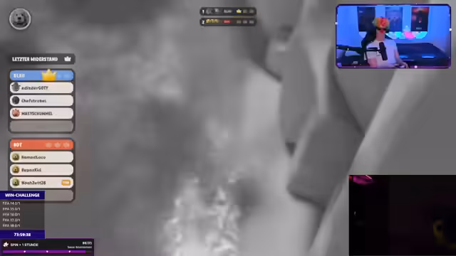 17:05:16Der Stream wechselt zum 6.000 Euro Illegalar Party Animals Cup, einem Turnier mit 24 Creatoren in Teams. Noah bildet mit Rebats, dem Rucksack und Hamid ein Team. Trotz technischer Schwierigkeiten mit dem Headset und Controller startet das Team in den Wettbewerb. Die erste Runde verläuft turbulent; Noah ist anfangs verunsichert und macht Fehler, doch das Team zeigt starke Moral und gewinnt das Spiel knapp. Der Fokus liegt auf Teamwork und Überwindung anfänglicher technischer sowie spielischer Herausforderungen.