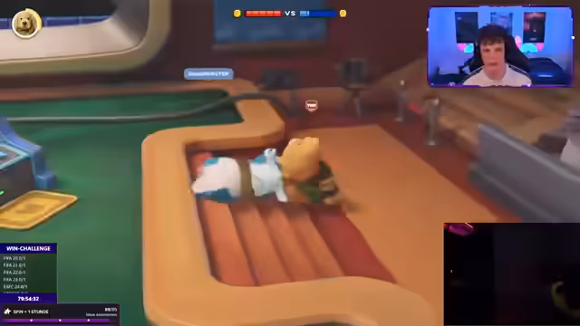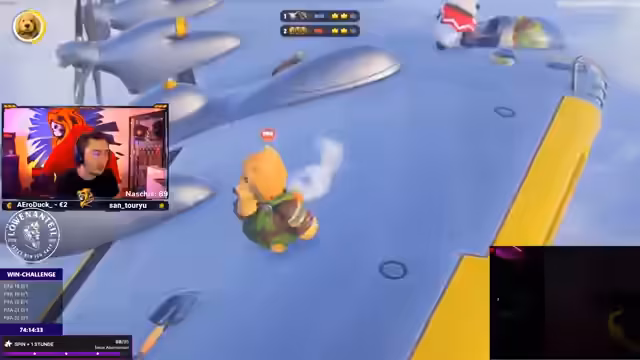 14:14:30Nun wechselt der Streamer zu einem weiteren Spiel, dem 'Illigular Party Animals Cup'. Er ist Teil eines dreiköpfigen Teams, das in einem Turnier gegen andere Creator antritt. Während des Spiels kommunizieren die Teammitglieder über Headsets und koordinieren ihre Strategien. Die Spiele sind intensiv und voller aufregender Momente, das Team kämpft um den Einzug in die K.O.-Runde.