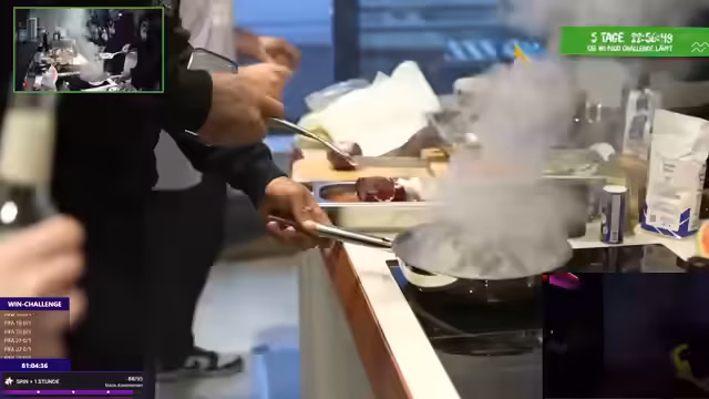12:49:40Nach einer Tea-Zeremonie zur Blutzuckermessung startet eine PC-Bau-Challenge. Ein Teilnehmer wird nach mehrmaligem Herstellen von Geräuschen mit einer Strafe belegt, die darin besteht, einen Gesichtsaufkleber aufzusetzen. Währenddessen wird eine weitere Diskussion über die gestellte Frage nach der Anzahl der pro Sekunde weltweit verschickten Tweets geführt, die offensichtlich absurd beantwortet wurde, was zu Verwirrung und Unmut im Chat führt.