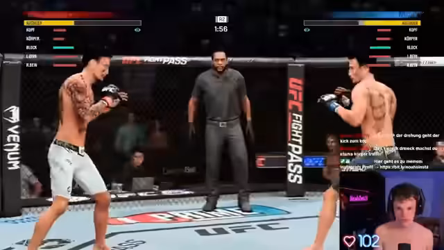 06:17:09Nach einer Niederlage im ersten UFC-Kampf startet ein weiterer, intensiverer Kampf. Der Kommentator übernimmt die Rolle des Kämpfers 'Max Holloway' und versucht, gegen einen starken Gegner zu bestehen. Es werden Kombinationen und Taktiken wie der 'Wandererschwinger' ausprobiert, doch der Kampf wird als unfair und frustrierend beschrieben, da die Steuerung nur unzureichend funktioniert.