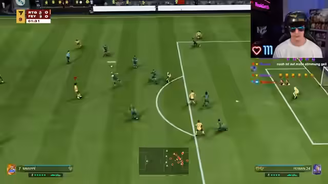 00:18:00Nach einigen technischen Vorbereitungen und einer Nahrungsaufnahme aus Hähnchen-Döner und Speisequark beginnt die Challenge. Der aktuelle Puls liegt bereits bei 110, was auf die Aufregung und die Mischung aus Koffein und Nahrung zurückzuführen ist. Das erste Spiel beginnt, und der Streamer betont die Wichtigkeit einer defensiven Taktik, um die Anzahl der Shots im Zaum zu halten, da hohe Torzahlen sonst schnell zur völligen Unspielbarkeit führen.