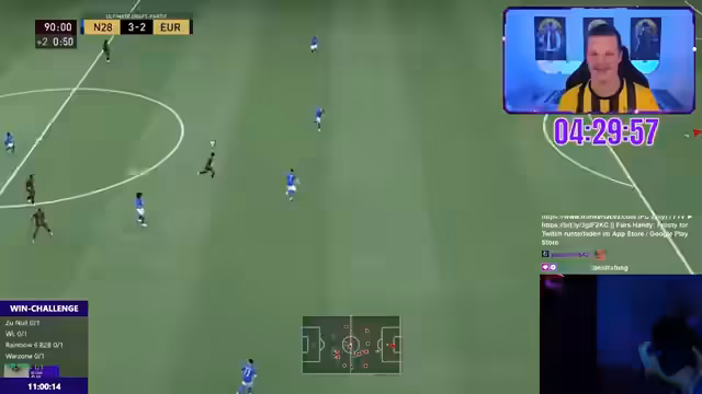 12:21:01Der Streamer qualifiziert sich für das Finale der Dorf-Challenge und muss nun im letzten Spiel gegen einen sehr starken Gegner antreten. Sein Team kämpft sich nach einem 0:2-Rückstand ins Spiel zurück und gewinnt durch ein Tor von 'Kanté' mit 3:2. Der Sieg wird als 'geisteskrank' und 'fucking best' beschrieben, wodurch die Qualifikation für die nächste Runde gesichert ist.