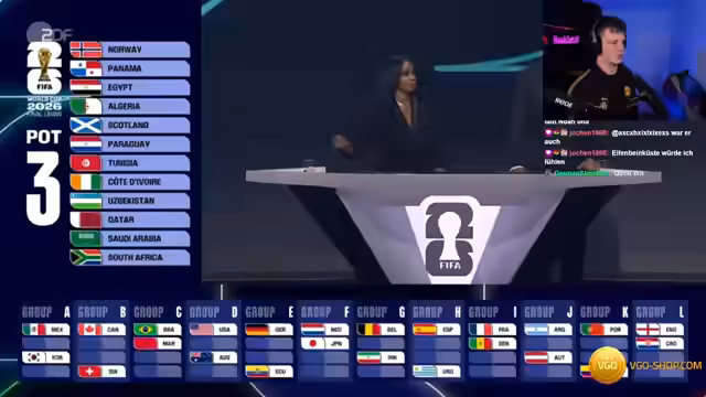 00:39:38Nach der kontroversen Preisverleihung konzentriert sich der Streamer auf die eigentliche Gruppenauslosung. Er erklärt die Prozedur, insbesondere die gesetzten Positionen der drei Gastgeber, und analysiert die Auslosungschancen für die Top-Nationen wie Spanien und Argentinien. Seine Kommentare sind von Skepsis und Ungeduld geprägt, besonders angesichts der langen Dauer der Veranstaltung.