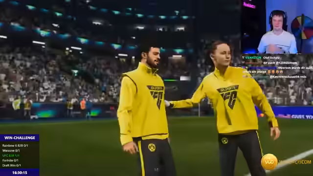 15:15:24Der Streamer berichtet über eine persönliche Einladung von EA Sports zum DFB-Pokalspiel Hoffenheim gegen Borussia Dortmund im Signal Iduna Park. Er beschreibt das Erlebnis in der VIP-Loge als 'geisteskranke Optik' und gibt seine Prognose für das Spiel ab. Neben der Live-Berichterstattung wirbt er um Likes und Abos für seinen Kanal und verlost ein Dortmund-Trikot unter den Zuschauern.