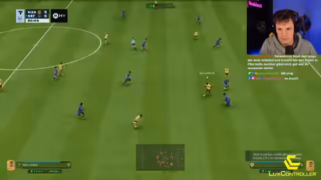 00:41:07Der Streamer äußert seinen Unmut über den Division Rivals Modus und die schlechten Belohnungen, die ihn unattraktiv machen. Während eines Spiels trifft er auf Lukas Podolski, der ihn mit einem Hattrick überrascht. Der Streamer ist fassungslos, da er Podolski eher im Dönerladen als auf dem Fußballplatz erwartet hätte und sich über dessen Alter und anhaltende Fußballkarriere wundert. Es entsteht spontan die 'Poldi-Döner-Challenge': Sollte der Streamer das Spiel gegen Podolski verlieren, muss er sich einen Döner von Podolskis Mangal Döner bestellen. Trotz eines 1:4-Rückstands in der Halbzeit gelingt dem Streamer ein unglaubliches Comeback, und das Spiel steht plötzlich 4:4. Die Spannung steigt, da der Döner auf dem Spiel steht und der Streamer alles gibt, um die Niederlage abzuwenden und den Döner nicht bestellen zu müssen.