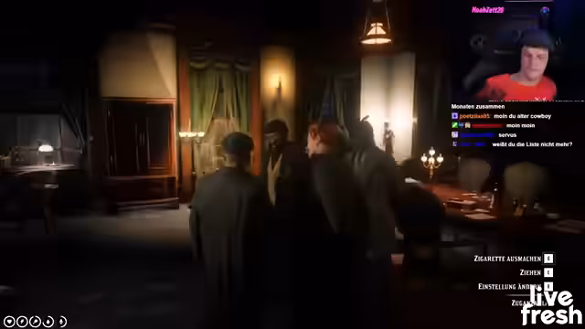 00:04:59Der Stream startet etwas später als angekündigt, aber ab sofort soll es tägliche Red Dead Redemption Streams ab 18 Uhr geben, da dann der Server online geht. Der Streamer berichtet von einer intensiven RP-Session bis drei Uhr nachts am Vortag und erwähnt, dass er sich am Morgen mit Voice Z getroffen hat, um die Steuerung durchzugehen. Direkt ins Spielgeschehen in St. Denis eingetaucht, begrüßt er die Zuschauer und bedankt sich bei einem Supporter für die langjährige Treue. Nach einer kurzen Toilettenpause und der Entgegennahme einer Essenslieferung von seiner Freundin, widmet sich der Streamer dem Ingame-Menü und den Hotkeys, die er stundenlang studiert hat. Er betont, dass der Server Wert auf qualitatives Rollenspiel legt und nicht auf Quantität, und dass es sich um ein Streamer-Projekt handelt, das immer mehr Leute begeistern soll. Er interagiert mit der Umgebung, nimmt ein Bier und betont die Wichtigkeit, die richtigen Leute für das Spiel zu finden, da es kein unendlich skalierbares Fortnite ist. Der Streamer fragt nach der Meinung seines Charakters und erklärt, dass er für Mr. Hitchcock und Mr. Lohm arbeitet und sich an Sheriff Waylon und Mrs. Abby orientieren will. Er erklärt, dass seine Freundin nun offiziell bei ihm in Köln wohnt und er seit 11 Uhr morgens Hotkeys festgelegt hat. Abschließend betritt er den Saloon und interagiert mit den anwesenden Charakteren.