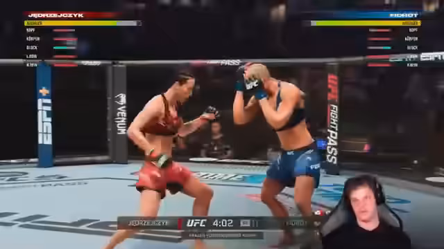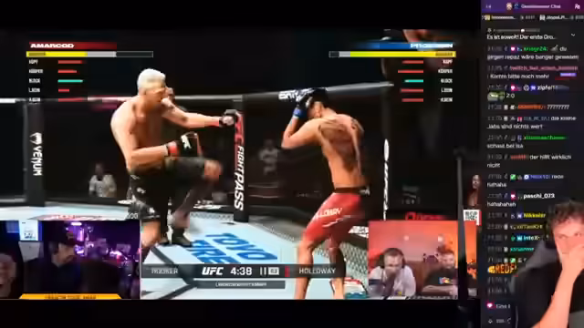 08:20:58Der Streamer wechselt zum Anschauen des UFC-Finales des Turniers. Er kommentiert die Kämpfe live, analysiert die Teams und macht Vorhersagen für die Ergebnisse. Dabei wird auch das Format des UFC-Turniers mit Best-of-Drei-Runden diskutiert und bewundert. Die Stimmung ist positiv und gespannt, und es werden die Auftritte der anderen Streamer gelobt, die im Finale zu sehen sind.