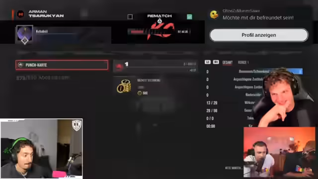 00:01:17Der Stream beginnt mit dem Ein ins Spiel Rematch zusammen mit den Teamkollegen Ali und Anne. Der Streamer erwähnt, dass er in einem früheren Cup als MVP ausgezeichnet wurde und seine Earnings mitnehmen konnte. Hauptthema des heutigen Streams ist das intensive Training für den bevorstehenden Bruch-Cup von Danny und Mickey, um die 7.000 Earnings zu sichern.