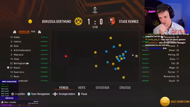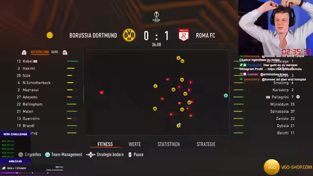 00:00:01Der Stream beginnt mit dem Ziel, mit Borussia Dortmund einen Titel zu gewinnen. Die virtuelle Karriere wird mit FIFA 14 gestartet, und der BVB unter Trainer Edin Terzic wird als Verein vorgestellt. Die anfängliche Begeisterung wechselt schnell zu Skepsis, als das Team ohne den Starspieler Erling Haaland bewertet wird. Eine plötzliche Story in der Karriere führt den Spieler jedoch direkt in die Saison, in der der Titel knapp verpasst wurde, was einen Neustart und eine direkte Titeljagd impliziert.