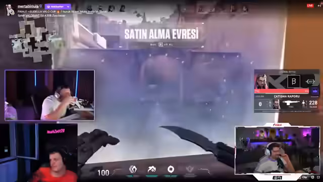 01:47:04Das Stream-Team analysiert das aktuelle Valorant-Spiel intensiv. Es werden Strategien besprochen, Traps gesetzt und eigene Schwächen reflektiert. Dabei geht es speziell um den Einsatz von Charakteren wie Gekko und Spectre. Das Team zeigt beeindruckende Fähigkeiten, besonders beim Triggern von Fallen und im Umgang mit komplexen Spielsituationen. Parallel wird dasTurniergeschehen verfolgt, wobei Sane sein erstes Turnier gewonnen hat und nun im Finale steht. Der Fokus liegt klar auf sportlicher Leistung und Teamdynamik.