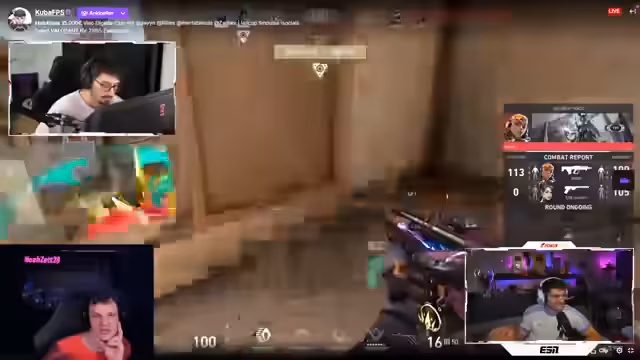 05:10:21Das Finale beginnt mit intensivem Gameplay zwischen den Teams. Die Teams bewegen sich strategisch über die Maps, und es kommt zu spannenden Situationen und Kill-Sequenzen. Der Streamer kommentiert die Spielzüge und analysiert die Stärken der Spieler. Es werden strategische Entscheidungen getroffen und die Performance einzelner Spieler wie Matze und Kuba hervorgehoben. Der Streamer gibt Tipps und beobachtet das Geschehen genau.
