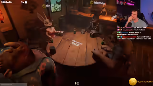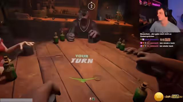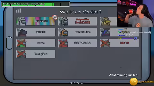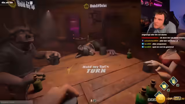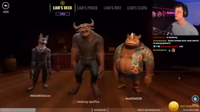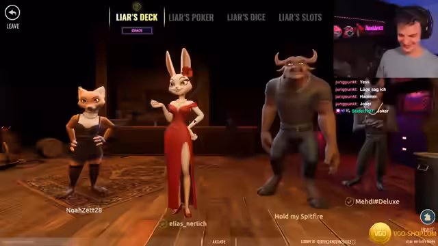 05:56:19Aufgrund der anhaltenden Probleme bei Among Us wechseln die Spieler zu einem neuen Spiel, Liar's Dice (auch bekannt als Schalmei), das Bluffen und Taktik erfordert. Elias Bar ist eine Variante des Spiels, bei dem Spieler versuchen, Karten loszuwerden, indem sie lügen oder die Aussagen anderer Spieler hinterfragen. Es werden verschiedene Regeln erklärt, wie das Platzieren von Karten und das Aufdecken von Lügen. Ziel ist es, als letzter Spieler übrig zu bleiben.