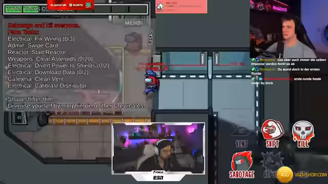04:16:21Während des laufenden Among Us-Spiels sammelt der Streamer Informationen und beobachtet das Verhalten seiner Mitspielen sehr genau. Er meldet einen Kill und versucht, anhand der Positionen und Bewegungen der anderen Spieler, den Imposter zu identifizieren. Er kommuniziert seine Beobachtungen an das Team und äußert seine Unsicherheit und seinen Verdacht gegenüber einem Mitspieler, was die spannungsgeladene Suche nach dem Betrüger fortsetzt.