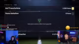 01:29:49Der Stream wird durch die Präsentation von In-Game-Packs und externen Sponsorings unterbrochen. Ein 'Döner'-Sponsor offeriert Belohnungen für die Zuschauer. Der Streamer zeigt dabei eine Mischung aus kritischer Haltung über die generellen Loot-Boxen-Mechaniken in FIFA und der Freude am unmittelbaren Erlebnis der Pack-Öffnungen und der damit verbundenen Live-Reaktion im Chat.