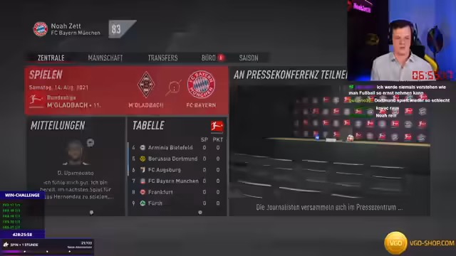 10:11:26Der Streamer startet einen neuen Versuch der Weekend League mit einer neuen, offensiveren Teamformation. Die Anfangsphase ist geprägt von weiteren Gegentoren, aber das Team findet langsam ins Spiel. Mit Treffern von Spielern wie Harry Kane und Marco Reus gelingt ein starkes Comeback und man gewinnt einige Spiele knapp. Trotz einiger verpasster Chancen wird die Weekend League mit elf Siegen erfolgreich abgeschlossen.