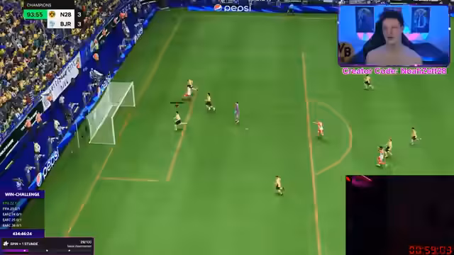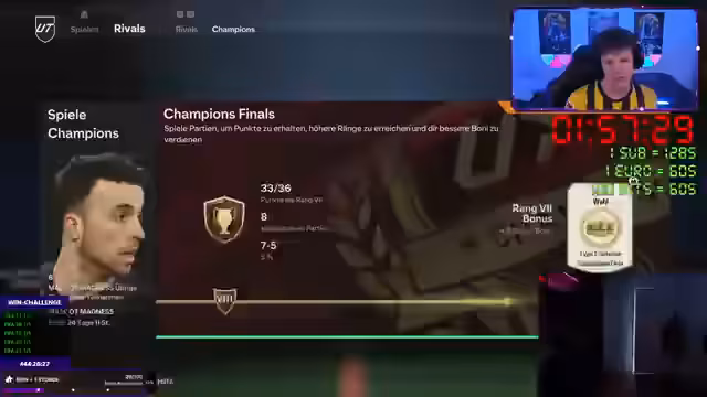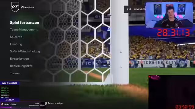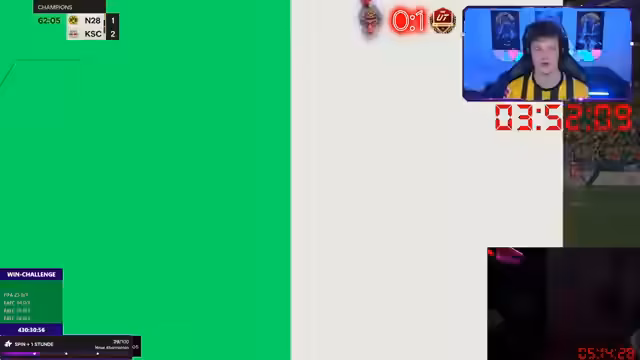 16:38:44Es wird intensiv an einer FIFA-Challenge gearbeitet. Der Nutzer ist sehr frustriert über das unvorhersehbare Glück im Spiel. Nach einem gefühlten Unrecht, bei dem zwei Spiele gestrichen werden, ist seine Geduld am Ende. Er stellt seine Fähigkeiten in Frage und verschwendet fast 60 Sekunden auf eine Werbeunterbrechung, was seine Verärgerung noch verstärkt.
