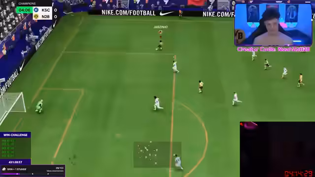 12:38:05Ein Streamer kündigt einen neuen Versuch im Spiel FIFA mit einem Team von Borussia Dortmund an. Er berichtet, eine Woche lang kein FIFA gespielt zu haben und betont den Wunsch, die Weekend League zu meistern. Ein Schlüsselspieler der Gegner wird als sehr stürmisch beschrieben, was zu einem frühen Gegentreffer führt. Der Streamer zeigt sich von der spielerischen Dominanz Borussias begeistert und hofft, dass sein Starspieler in der letzten Minute noch einen Treffer erzielt, um die Niederlage abzuwenden.