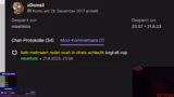 10:53:50Der Streamer wagt sich an die 'Mission Impossible'-Map von Marcel Eres aka MonteBlack. Nach mehreren Stunden und anhaltendem Misserfolg, der ihn in den Wahnsinn treibt, gibt er auf und muss die vereinbarte Strafe antreten: das Essen eines scharfen Hotchips in Kombination mit einer ganzen Flasche Tabasco. Die Strafe führt zu starker körperlicher Reaktion und Verzweiflung.