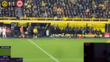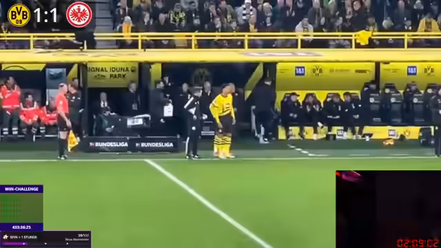 08:49:34Kurz vor der Halbzeit gelingt Dortmund der Ausgleich zum 1:1 durch Emre Can. Der Streamer bewundert den starken Treffer. Nach der Pause sieht er die Dortmunder zu hoch stehen und das Spielkontrolle verlieren. Nachdem Frankfurt in Führung geht, kritisiert er den Schiedsrichter heftig. Dieser habe zwei rote Karten gegen falsche Spieler gezeigt und das Spiel ruiniert. Ein Spielabbruch aufgrund von Pyrotechnik angedeutet.