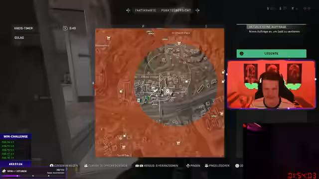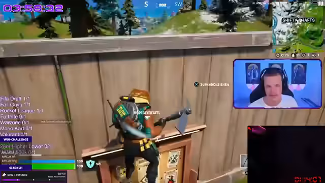 17:47:13Eine schwierige Challenge im Spiel Fortnite wird gestartet. Der Streamer muss eine spezifische Map von Montana Black in wenigen Stunden schaffen, um eine Bestrafung zu vermeiden. Aufgrund von Internetschwierigkeiten und seinem eigenen Leistungsdruck wird er frustrierter und gibt die Challenge beinahe auf, entscheidet sich aber dafür, weiterzumachen und die Bestrafung anzunehmen.