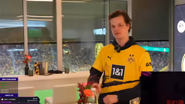 12:58:36Der Streamer befindet sich in der Loge des Signal Iduna Parks für ein DFB-Pokalspiel. Er beschreibt die Atmosphäre als geisteskrank und vergleicht sie mit einem Ballermann-Fest, bei dem viele Menschen feiern. Er präsentiert die exklusiven Erlebnisse wie einen komfortablen Sitz und besonderen Verpflegungsoptionen. Er gibt den Zuschauern die Chance, ein Trikot zu gewinnen, fordert Likes und Kommentare an.