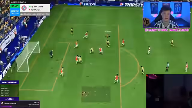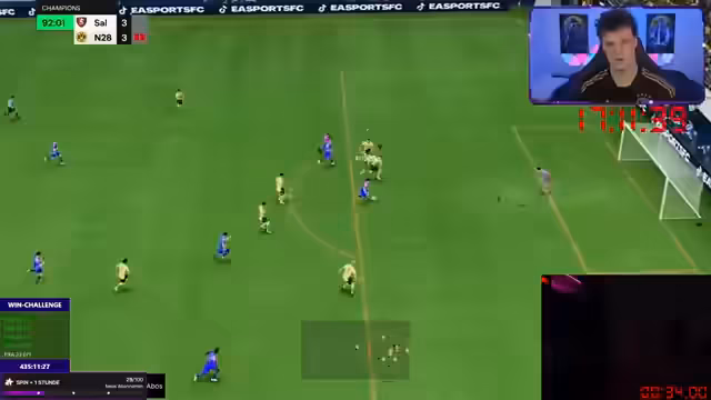 20:29:16Die Eröffnungsphase des Stream ist geprägt von intensiven und frustrierenden FIFA-Spielen in der Weekend League. Der Streamer kämpft mit starken Schwankungen in seiner Leistung, kritisiert seine Spieler wie Rodrigo und Lohr scharf und sieht sich einem 3-0-Rückstand ausgeliefert. Die anfängliche Anspannung mündet in einem deutlichen Leistungseinbruch, wobei insbesondere die Verteidigung und das Spielaufbau als unterdurchschnittlich bewertet werden. Trotzdem wird ein Comeback auf 2-3 gefeiert und der Streamer gibt sich selbst den Mut, positiv in der Weekend League weiterzumachen.