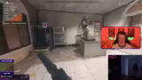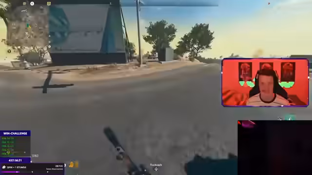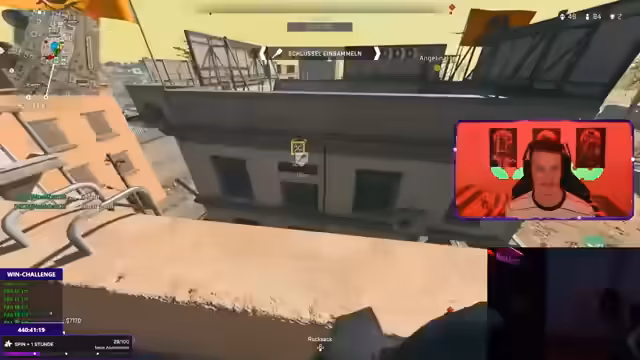 22:47:11Zurück vor dem Bildschirm, streamt der Streamer das Spiel Warzone. Er analysiert die Landezone mit einem Coop-Partner, welche idealerweise in der Nähe von Shop, Tankstelle und Munitionslayern liegen sollte. Die Runde beginnt chaotisch, das Team landet auf einem Dach und wird von Gegnern attackiert. Der Streamer koordiniert mit seinem Partner, kämpft sich ums Überleben und lootet fleißig weiter.
