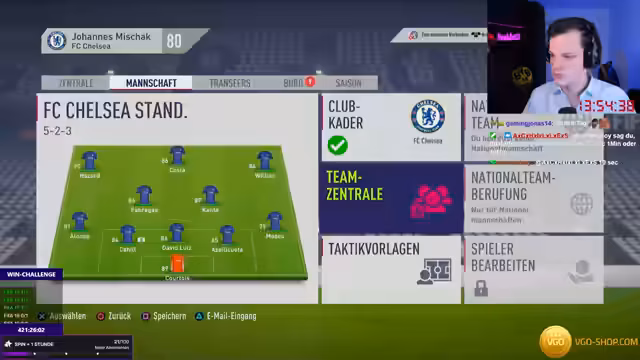 00:02:41Die Nostalgie-Karrierewin-Challenge beginnt mit FIFA 18. Nach dem Verlust des letzten Titels in der vorherigen Saison wird der Fokus auf den Wiederaufbau gelegt. Das Team um Hazard, Costa und Fabregas wird als Titelaspirant präsentiert. Allerdings offenbart sich schnell eine prekäre finanzielle Situation, die es erschwert, das Kader entsprechend zu verstärken und verliehene Spieler zurückzuholen. Die ersten Schritte sind geprägt von der Notwendigkeit, den Kader zu konsolidieren und Budgetprobleme zu managen.