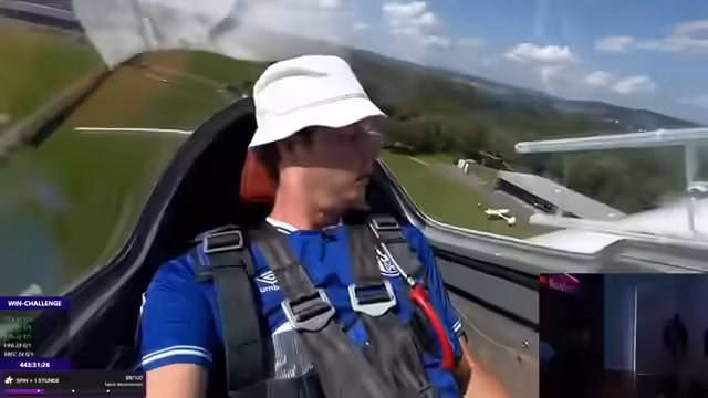 11:56:45Unmittelbar nach dem Fallschirmsprung absolviert der Streamer eine zusätzliche Aktivität: einen Segelflug. Gemeinsam mit einem Fluglehrer steigt er in ein Segelflugzeug und fliegt über die Region. Diese Erfahrung wird als sehr entspannend und reizvoll beschrieben und bildet einen Kontrast zum adrenalinreichen Fallschirmsprung.