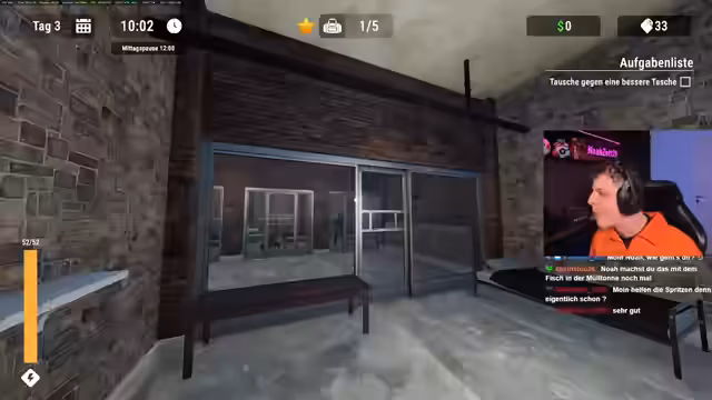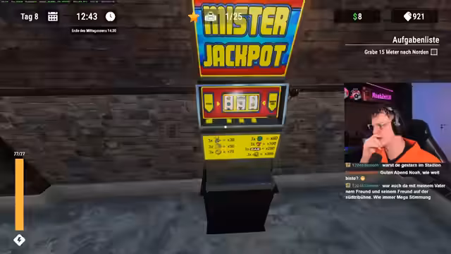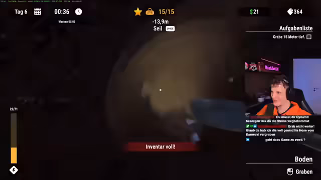 00:52:23Nachdem das Graben im Erdreich erfolgreich war, stößt der Streamer auf massive Felsbrocken, die nicht mit herkömmlichen Werkzeugen bewältigt werden können. Er erfährt, dass Dynamit benötigt wird. Eine wichtige Erkenntnis ist der Kauf eines Kompasses, um die Richtung des Tunnels und des Ausgangs zu bestimmen, was die Suche nach dem Dynamit und dem Fluchtweg entscheidend vereinfacht.