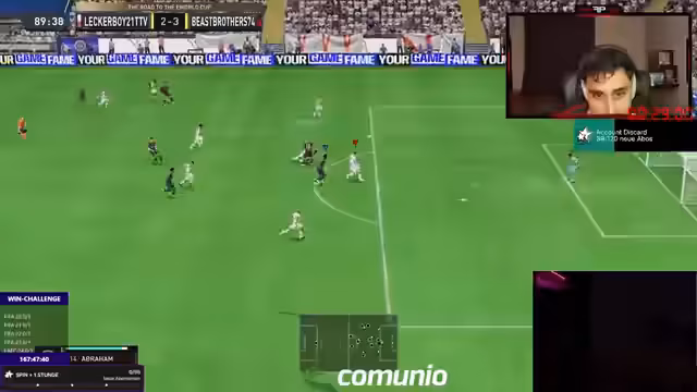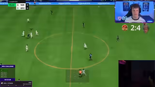 10:55:02Der Streamer beginnt die Champions Weekend League mit einer bitteren 1-0-Niederlage gegen das erste Team. Trotz anfänglicher Führung verliert das Spiel klagglos, was zu Frustration führt. Der Streamer kritisiert die eigene Unachtsamkeit und den Gegner, der das Spiel kontrollierte. Die Anfangsniederlage beeinträchtigt die Gesamtstimmung für die anstehenden 20 Spiele, da der Start nicht zufriedenstellend verlief. Die Parolen der Gegner stören den Fokus zusätzlich.
