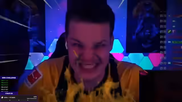 06:53:31Nach einer intensiven Glücksrad-Challenge und einem verlorenen Fußballspiel eskaliert die Frustration des Streamers. Er beschuldigt den Gegner, absichtlich zu zögern, und gerät in einen Wutausbruch. Dieser kulminiert darin, dass er in seiner Wut auf die Tastatur schlägt, was zu einem Ausfall von Monitor und Controller führt. Der Stream, der mit technischen Problemen, finanziellen Verlusten und physischen Schäden endet, lässt ihn völlig erschöpft und frustriert zurück. Er gibt auf und verlässt den Stream.