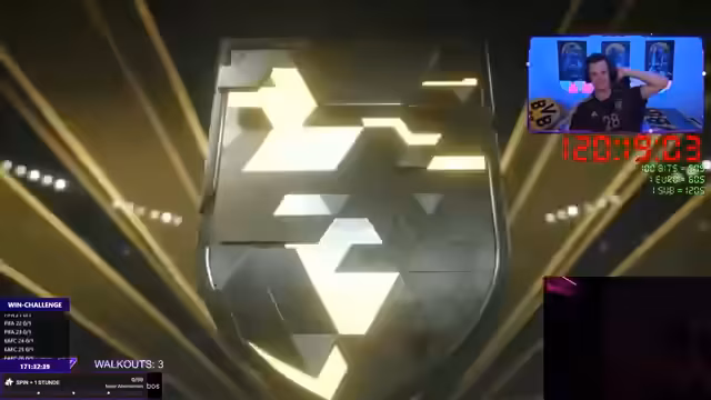 07:11:34Zwischen den Spielen setzt der Streamer auf das Glücksrad, um zusätzliche Strafen und Challenges zu generieren. Eine der Strafen besteht darin, 40 Hampelmänner zu machen. Nach Spielgewinnen öffnet er sogenannte 'Totzbrillen', also garantierte Icon-Packs aus dem Shop. Er gibt den Zuschauern den Tipp, PSN-Karten bei Instant Gaming zu vergünstigten Preisen zu erwerben, und zieht bei den Packen sowohl nützliche als auch enttäuschende Spieler. Dieser Teil des Streams zeigt das Zusammenspiel aus sportlicher Konkurrenz und interaktiver G Lucksspielshow.