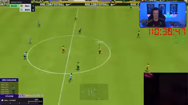 14:00:45Ein Rennspiel auf einem professionellen Simulator wird gespielt, das durch technische Probleme wie überhitzte Reifen und Hänger des Spiels beeinträchtigt wird. Der Streamer erwähnt gesundheitliche Probleme wie Kopfschmerzen und Übelkeit aufgrund der Anstrengung. Danach folgt eine Session von FIFA Pro Club Spielen mit der Community, in der das Team mehrere knappe Spiele verliert und knapp einen Aufstieg verpasst, was zu Frustration führt.