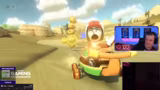 10:01:53Die Stimmung wechselt zu kooperativen und kompetitiven Gaming-Events. Der Streamer spielt gemeinsam mit anderen Streamern wie Hugo, Eldos und Papa Blotte in einem Mario Kart-Turnier. Es kommt zu einem hitzigen, aber humorvollen Wettbewerb, bei dem Strategien wie Sammeln von Münzen, Items halten und sich absprechen im Vordergrund stehen. Ziel ist es, als Team die Plätze zu sichern.
