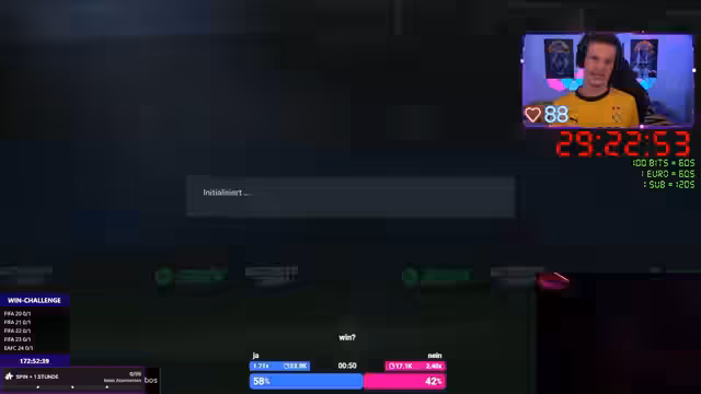 07:06:35Der Streamer berichtet über erhebliche technische Probleme, die sein Setup betreffen. Klimaanlage und Monitor sind defekt, was zu Kosten von rund 650 Euro geführt hat. Nachdem er erklärt hat, dass er dies die letzte Weekend League des Jahres war, beginnt er eine neue Challenge: die Nostalgie-Karriere-Win-Challenge. Dabei müssen 20 Spiele absolviert werden, und für jede Niederlage wird das Glücksrad gedreht, das körperliche Strafen wie Liegestütze vorsieht. Der Streamer äußert Zweifel, ob er das überleben wird, und bittet die Zuschauer um Vorschläge für weitere Strafen auf dem Rad.