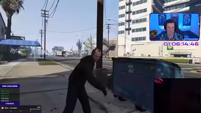 11:25:15Nach der Eskalation wechselt der Streamer zur GTA 5 Story, bei der er auf 100% Spielabschluss zielt. Pro Tod muss er das Glücksrad drehen, um eine maximale Anzahl von Toden einzuhalten. Der Streamer erzählt von den Fortschritten und den dabei erlittenen Toden. Nach einer Pause setzt er den Stream fort und kündigt weitere Spiele und ein 250k Event an.