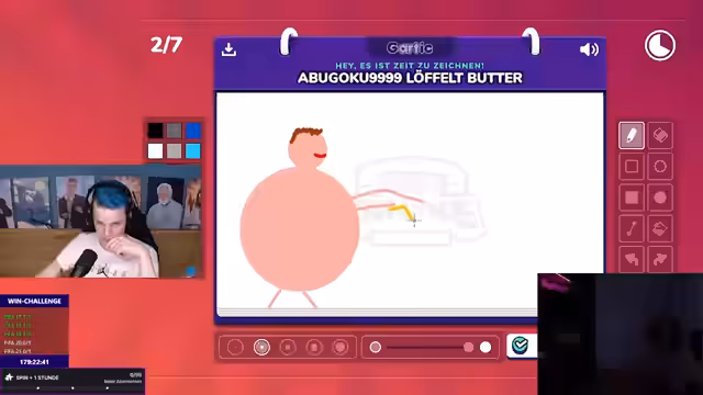 17:33:39Der Stream beginnt mit einem surrealen Zeichenauftrag, bei dem der Streamer versuchen muss, einen Fischkarren zu zeichnen, was in völligen Chaos und dem Unverständnis des Streamers gipfelt. Er beschreibt den Prozess als bodenlos und geisteskrank, betont aber gleichzeitig seine künstlerische Freiheit und macht sich über die eigenen zeichnerischen Fähigkeiten lustig. Es kommt zu einem kurzen Streit mit dem Streamer Andy, der stinksauer ist, und der Chat reagiert verwundert auf die gesamte Szenerie.