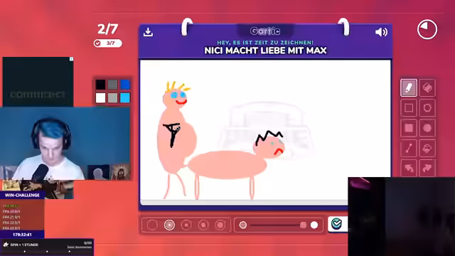 06:24:07Eine spielerische Herausforderung, bei der der Streamer versucht, von Zuschauern beschriebene Begriffe oder Szenen zu zeichnen, steht im Mittelpunkt. Dabei kommt es zu zahlreichen Missverständnissen, Fehlzeichnungen und absichtlich 'bodenlosen' Interpretationen, die den Chat zum Lachen bringen. Der Streamer beschwert sich über seine mangelnde zeichnerische Begabung und seine Farbblindheit, während die Zuschauer durch ihre fantasievollen und obszönen Vorschläge für reichlich Unterhaltung sorgen.
