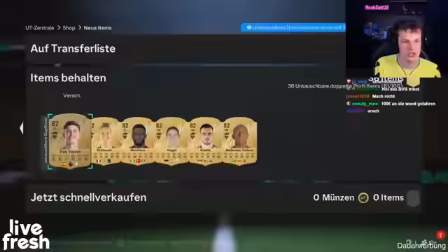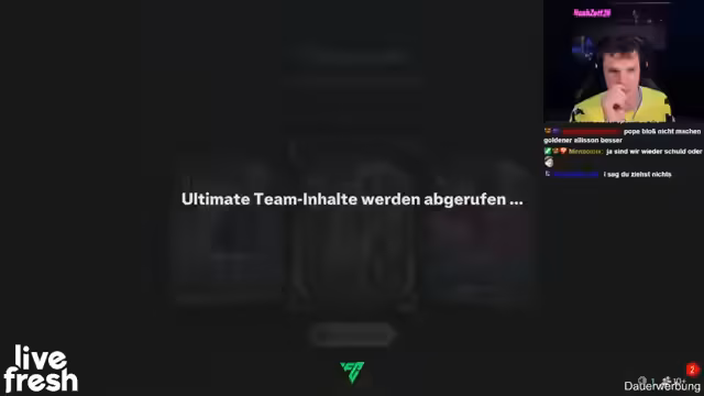 00:08:16Nach der langen Pause freut sich der Streamer besonders auf die Rückkehr in die Weekend League. Er stellt das aktuelle Problem seines FUT-Teams vor: Es hat durch den Abgang im letzten Jahr nur noch schwache Spieler. Der Fokus liegt darauf, ein neues Meta-Team mit 200.000 Münzen Kapital aufzubauen. Der Plan ist es, Elf Siege in der Weekend League zu erreichen, auch wenn das aktuelle Team als "Müll" und "tot“ beschrieben wird. Die Kommentare der Zuschauer werden zur Ideenfindung für die Team-Zusammenstellung genutzt.