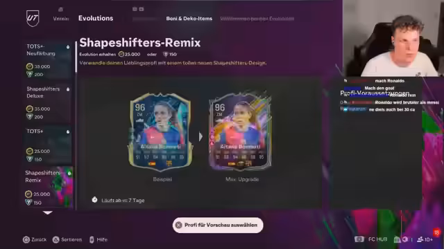 07:17:10In einem Akt der Verzweiflung kündigt der Streamer einen radikalen Neustart an. Er plant, das Spiel für 30 Tage komplett zu pausieren, seinen Stream zu deinstallieren und sein ganzes Team auszutauschen. Gleichzeitig kündigt er an, sein Content-Format ändern zu wollen, da tägliche FIFA-Rivals-Challenges zu eintönig und erfolglos geworden seien, was den Spaß am Streamen nimmt.