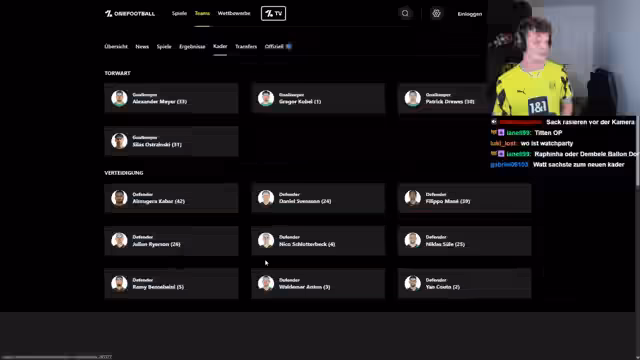 00:11:33Der Streamer analysiert den Kader von Borussia Dortmund und sieht in der Defensive durch viele Verletzte und den Abgang von Schlotterbeck eine große Schwäche. Er prognostiziert eine schwierige Hinrunde, aber eine bessere Rückrunde. Sein Saisonziel ist ein Platz unter den Top 4, wobei er spezielle Strafen für den Fall einer Pokal-Niederlage gegen den Drittenligisten ins Gespräch bringt.
