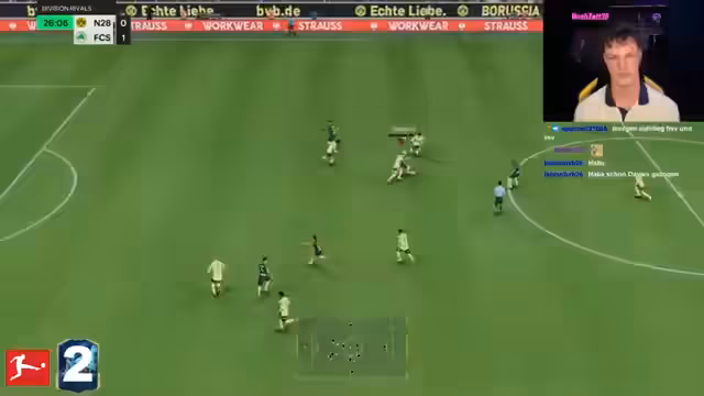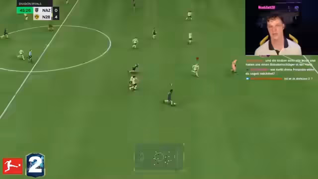 01:58:24Der Fokus des Streams verlagert sich komplett auf das FIFA-Spiel. Der Streamer berichtet, dass er nur noch Munition für einen Tag Krieg in Deutschland hat, was ein Symbol für seine Ressourcen in dem Spiel sein soll. Es wird eine Wette eingegangen, um in Division 2 aufzusteigen und nächst Woche bei der Weekend League gute Konkurrenten zu haben. Während des Spiels werden Taktiken analysiert und spielerische Aktionen kommentiert, wobei der Streamer oft emotional reagiert und seine Frustration über das aktuelle Team zum Ausdruck bringt.