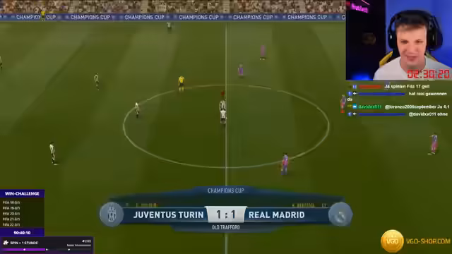 03:16:40Von 11800 Uhr an wird der chaotische Spielverlauf des Finales beschrieben: Nach einem 3:3-Unentschieden nach 90 Minuten geht das Spiel in die Verlängerung, in der Juventus mit einem 4:3-Sieg das Triple gewinnt. Der Streamer reagiert emotional auf umstrittene Schiedsrichterentscheidungen, ein mögliches Handspiel von Real Madrid und Torerfolge von Spielern wie Ronaldo und Mandzukic. Verletzungen und strategische Fehler beider Teams werden kritisch bewertet, während die Siegesfeier von Juventus und die Bedeutung des Titels für das Karrieremodul betont werden.
