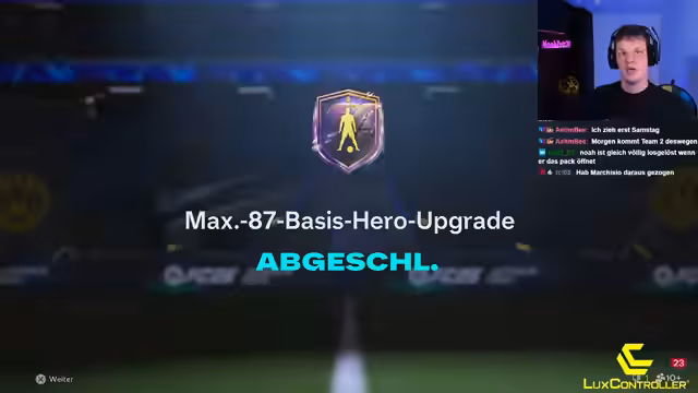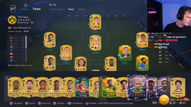00:10:39Nach dem erreichen von Division 5 werden die Rivals Rewards gezogen. Die Ausbeute ist als sehr enttäuschend beschrieben, mit einem best gezogenen 84er Spieler. Der Streamer führt ein Experiment durch, bei dem er für nur 15 Euro im Shop wesentlich bessere und wertvollere Spieler, sogenannte Walkouts, zieht. Im direkten Vergleich steht dies im scharfen Kontrast zur wöchentlichen Belohnung, die als nicht wert und krankhaft eingestuft wird und den Spieler zum Kauf von Packs zwingen soll.