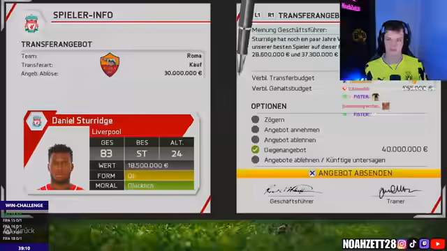 00:01:33Der Stream beginnt mit intensiven Diskussionen über Spielertransfers und Kaderstrategie. Der Streamer verhandlungen über Spieler wie Stoich, Henderson und Storch, bewertet Angebote und überlegt, welche Spieler verbleiben oder abgegeben werden müssen. Es geht um die finanzielle Situation des Vereins, die Forderungen anderer Teams und die Notwendigkeit, gezielt zu investieren, um eine konkurrenzfähige Mannschaft zusammenzustellen.