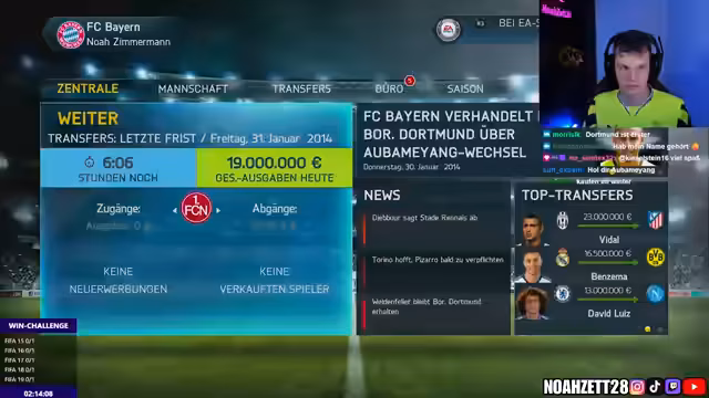 01:09:49Nach dem Rückschlag startet der Streamer einen Neuanfang mit dem FC Bayern München. Die Strategie ist schnell und ehrgeizig: Top-Spieler wie Hummels, Lewandowski und Reus werden geholt, um sofort um alle Titel zu kämpfen. Ziel ist es, das Triple zu gewinnen, was die bisherigen Misserfolge vergessen lassen soll. Die Riege der Weltklasse-Spieler verspricht eine starke Saison.