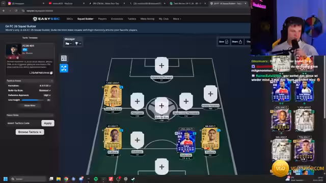 04:18:14Der Streamer analysiert die Leistungen der Spieler und diskutiert mögliche Teamverbesserungen. Insbesondere Lampard wird als Schwachpunkt identifiziert, der ersetzt werden sollte. Es wird überlegt, welche Spieler auf Dauer gespielt werden sollen und wie das Team chemisch optimiert werden kann. Die Kosten für potenzielle Upgrades werden besprochen, wobei ein Budget von 160.000 bis 200.000 Coins zur Verfügung steht. Es wird festgestellt, dass viele der aktuellen Spieler nicht die gewünschte Chemie aufweisen, was zu weiteren Schwierigkeiten führt. Die Suche nach einem neuen Mittelfeldspieler, der sowohl spielerisch überzeugt als auch chemisch ins Team passt, steht im Vordergrund. Zudem wird über die Teilnahme an weiteren SBCs und die Öffnung von Packs nachgedacht, um bessere Spieler zu erhalten.